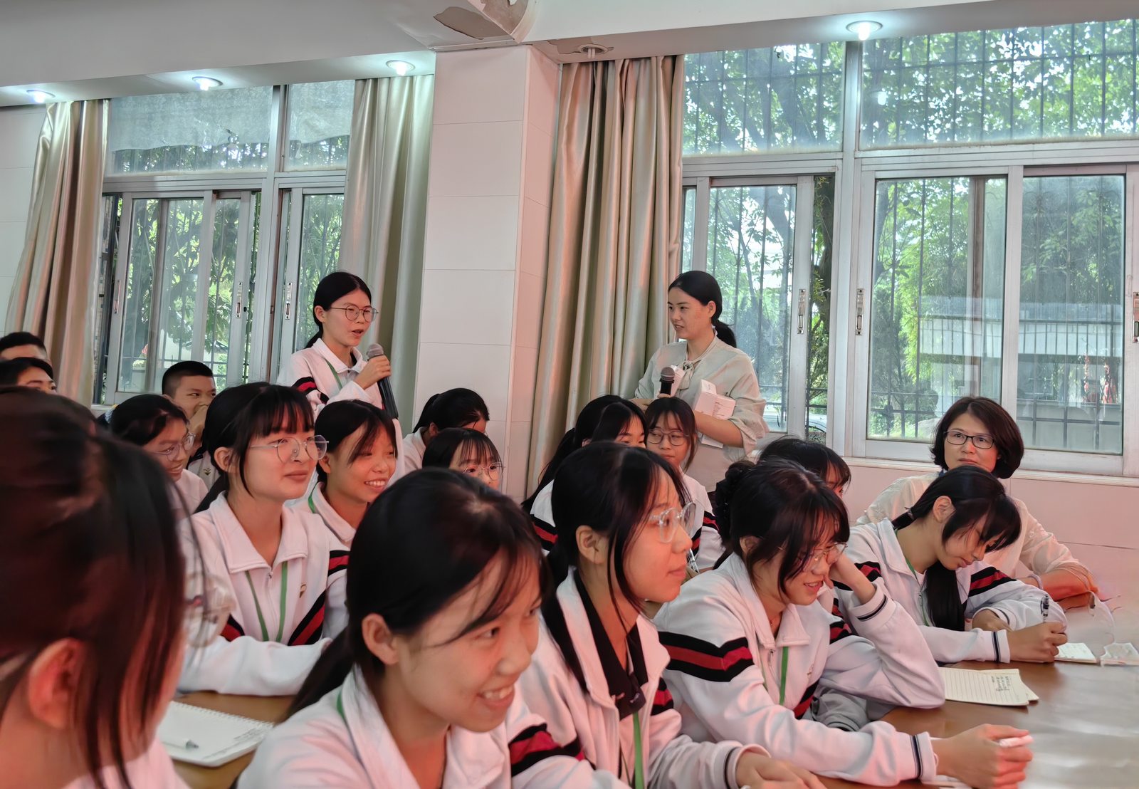 活动邀请汕头社会心理学会副会长、潮阳区人民医院副主任医师宋宁以《为“心”赋能·铸就美好人生》为题开展讲座。宋宁从“认识自我、树立理想、放松心态、赢在折点”等方面讲授有关心理知识,引导学生正确应对考前压力,鼓励学子树立中考必胜信念,引起学生强烈共鸣。活动现场互动热烈,掌声如潮。